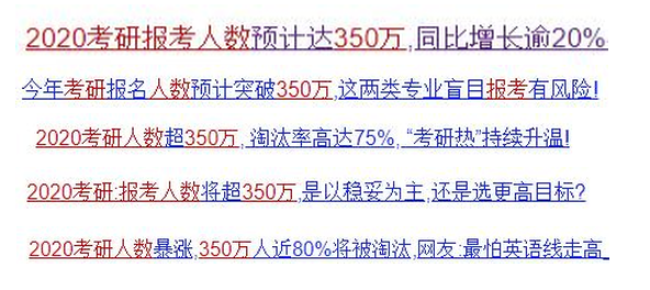網(wǎng)絡(luò)上有一個(gè)普遍流傳的版本,“2020考研人數(shù)350萬(wàn)”、“據(jù)北京教育考試院公布的信息”··· ···