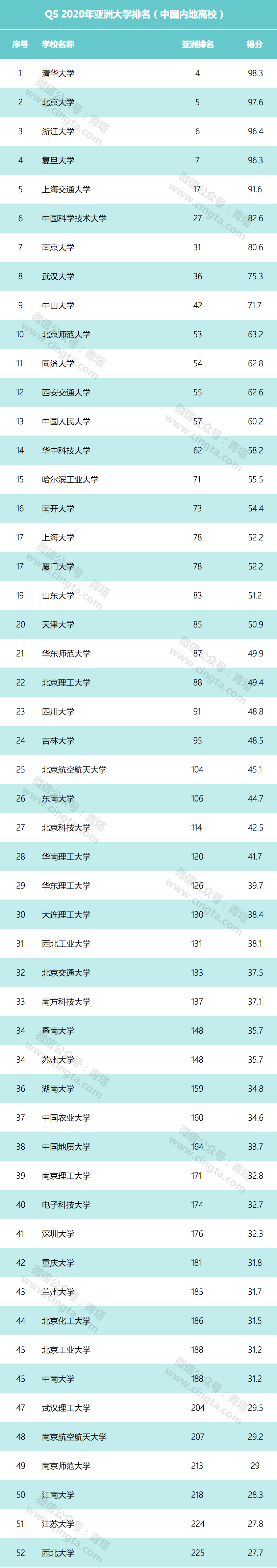 以上就是小編整理的“2020QS亞洲大學排名出爐,165所中國高校上榜”,希望對考生有所幫助。