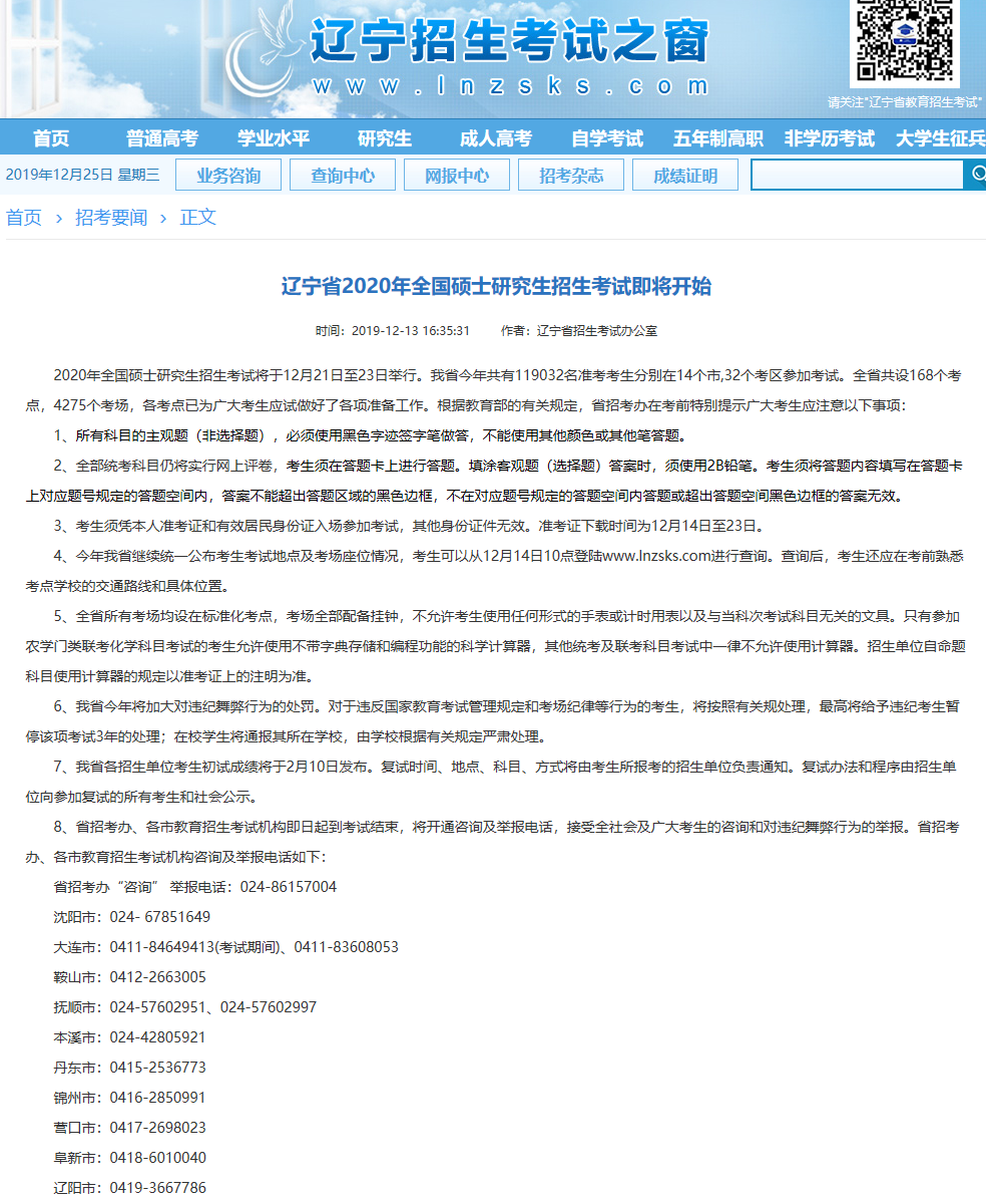 遼寧省招生考試辦公室公布的“遼寧省2020年全國碩士研究生招生考試即將開始”可得知,2月10日發(fā)布成績。