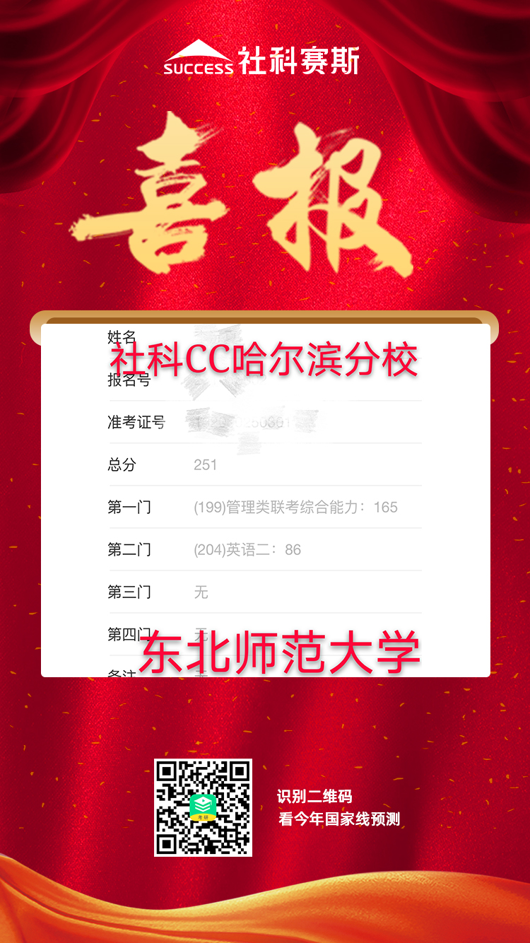 哈爾濱分校學(xué)員,報(bào)考東北師范大學(xué),251分