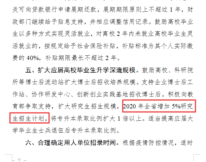 通知稱2020年全省增加5%研究生招生計劃,將專升本錄取比例擴(kuò)大1倍以上。