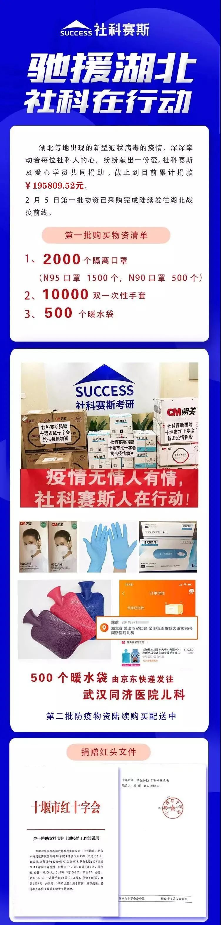 防控疫情首先就是要聽黨話、跟黨走、不信謠、不傳謠。2月4日,李書記發出了《社科賽斯疫情捐款倡議書》,之后共收到捐款195809.52元,于2月5日購買了第一批物資支援湖北十堰市,包括2000個隔離口罩、10000雙一次性手套、500個暖水袋,余款正在進行第二批物資的購買。其中黨員捐款31616元,黨支部已通過海淀街道捐贈給疫情災區。