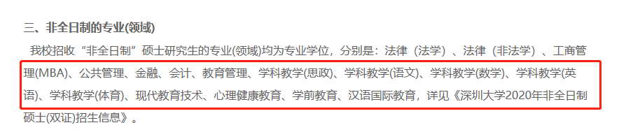 深圳大學公布2021年碩士研究生招生簡章,其中非全日制專業相較于2020年碩士研究生招生簡章來說少了法律(非法學)、學科教學(體育)、學前教育、現代教育技術四個專業。學費也有所調整,法律碩士非全日制從7.5萬元變為9萬元。