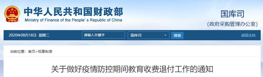 財(cái)政部網(wǎng)站17日發(fā)布《關(guān)于做好疫情防控期間教育收費(fèi)退付工作的通知》,要求2019-2020學(xué)年教育收費(fèi),按規(guī)定因疫情原因需辦理退付或抵扣手續(xù)的,應(yīng)于2020年8月31日前完成。以下是《關(guān)于做好疫情防控期間教育收費(fèi)退付工作的通知》公告原文: