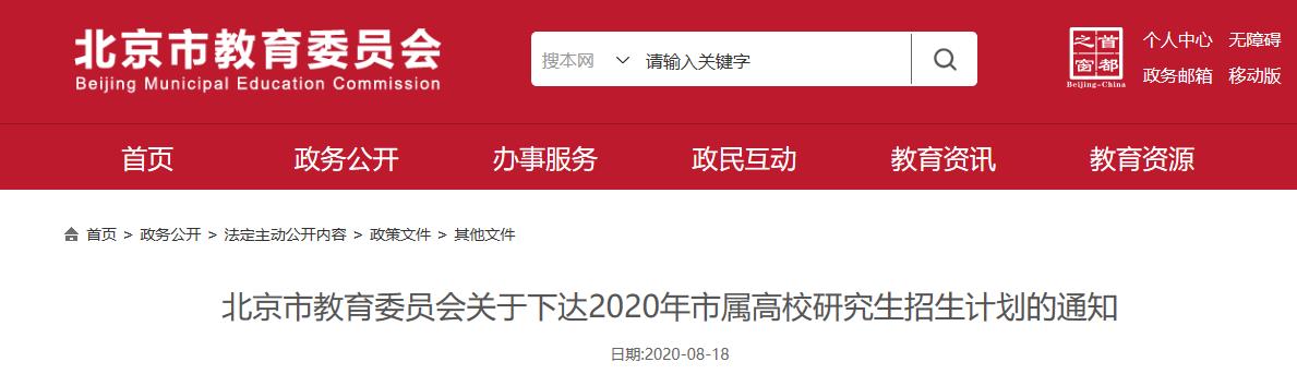 北京市教育委員會關于下達2020年市屬高校研究生招生計劃的通知