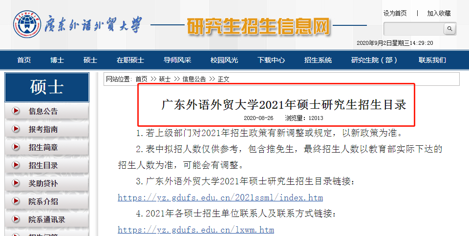 廣東外語外貿大學公布2021年碩士研究生招生目錄。