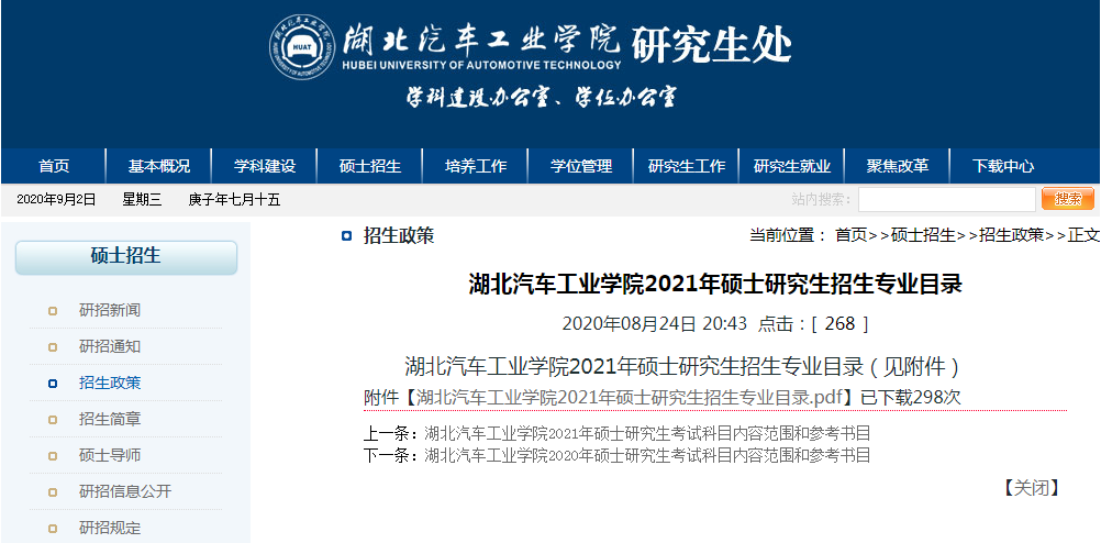 湖北汽車工業學院公布2021年碩士研究生專業目錄。