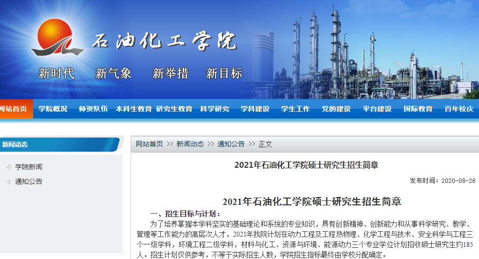蘭州理工大學石油化工學院公布2021年碩士研究生招生簡章。