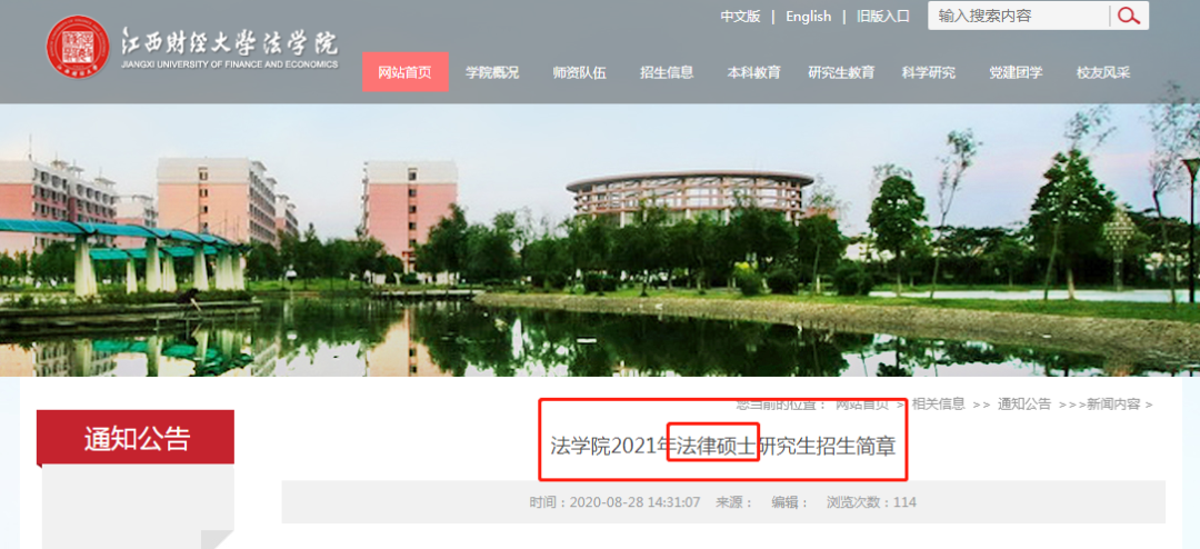 江西財經大學法學院公布2021年法學/法律碩士研究生招生簡章。