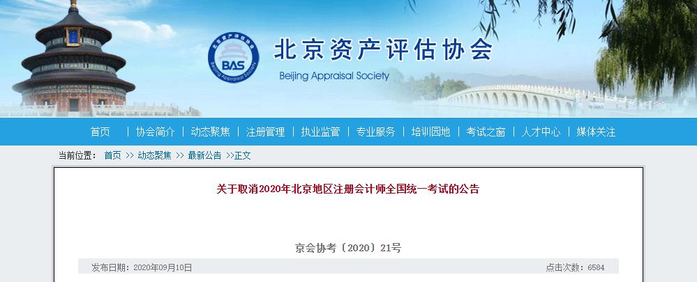 關(guān)于取消2020年北京地區(qū)注冊會計師全國統(tǒng)一考試的公告