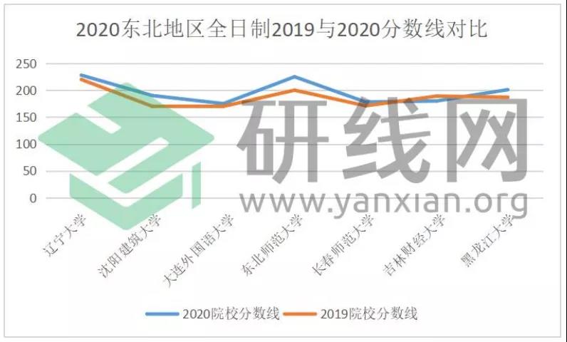 如上圖所示,東北地區(qū)全日制2020與2019分?jǐn)?shù)線相比較,其中只有吉林財(cái)經(jīng)大學(xué)分?jǐn)?shù)線有所下降,剩余