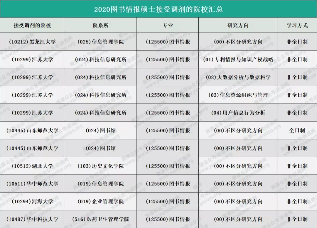研線網(wǎng)整理2020年圖情碩士接受調(diào)劑院校匯總