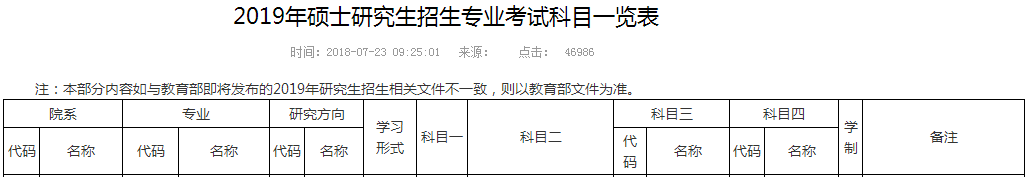 圖片來源:2019年碩士研究生招生專業(yè)考試科目一覽表