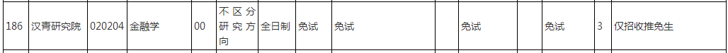 財(cái)政金融學(xué)院、漢青研究院(僅招收推免生)、國(guó)際學(xué)院三個(gè)學(xué)院招生,具體招生人數(shù)未公布。