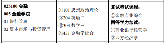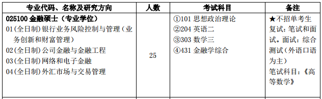 3)考試科目:(1)101思想政治理論;(2)204英語(yǔ)二;(3)303數(shù)學(xué)三;(4)431金融學(xué)綜合。