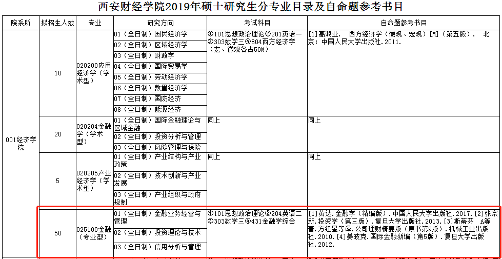 圖片來源:西安財(cái)經(jīng)學(xué)院2019年碩士研究生分專業(yè)目錄及自命題參考書目