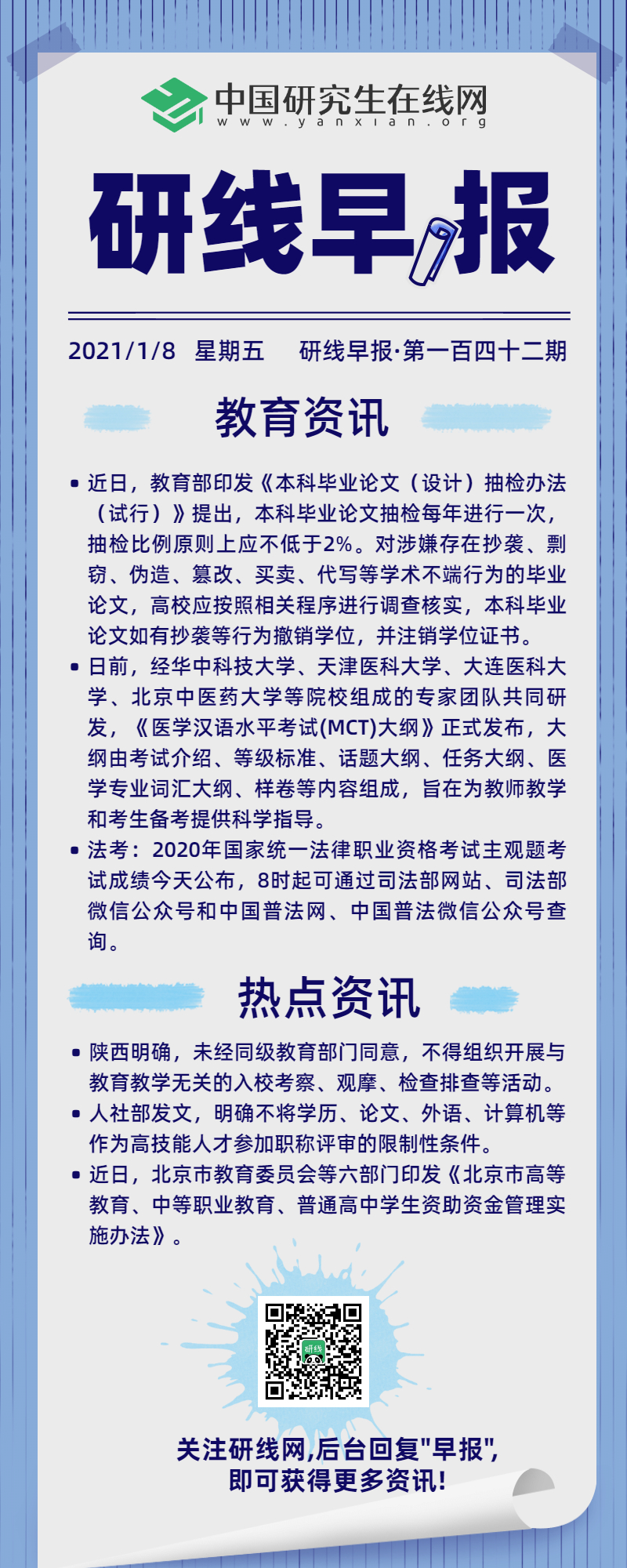 ?近日,教育部印發《本科畢業論文(設計)抽檢辦法(試行)》提出,本科畢業論文抽檢每年進行一次,抽檢比例原則上應不低于2%。對涉嫌存在抄襲、剽竊、偽造、篡改、買賣、代寫等學術不端行為的畢業論文,高校應按照相關程序進行調查核實,本科畢業論文如有抄襲等行為撤銷學位,并注銷學位證書。