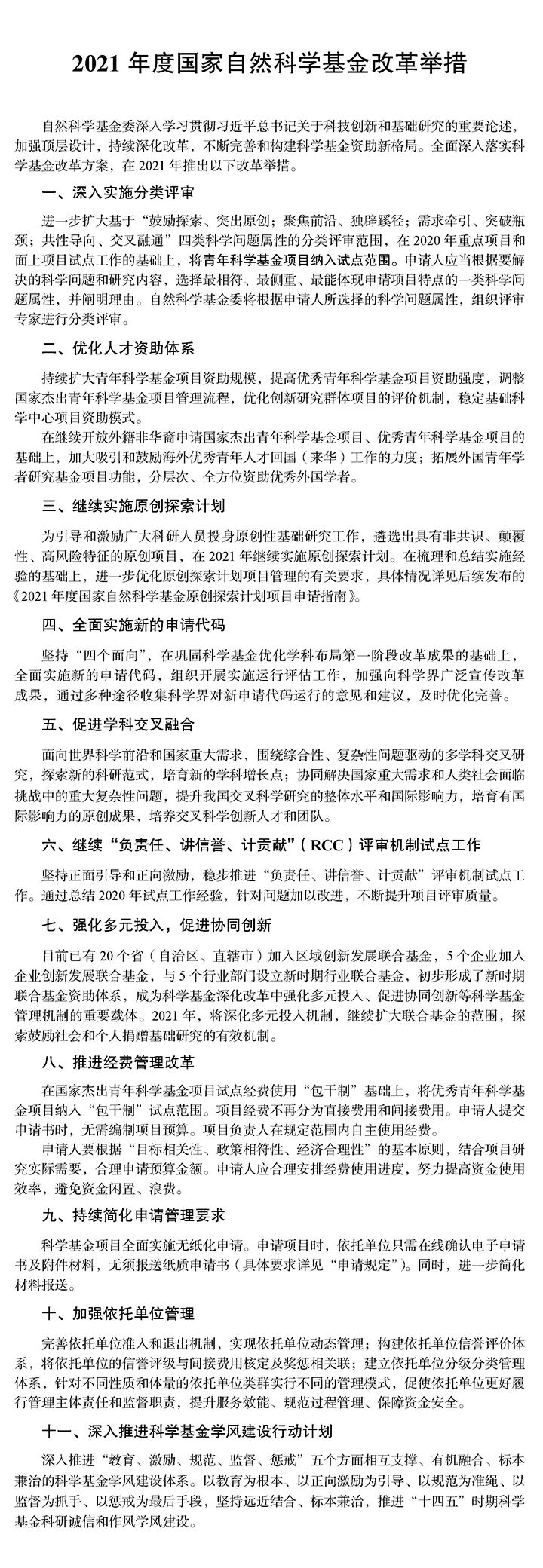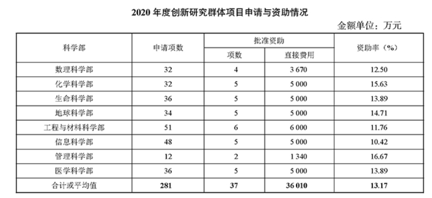 《指南》中提出,將在2021年推出十一項改革舉措,并公布了2020年各學部面上項目、青年科學基金項目、地區(qū)科學基金、優(yōu)秀青年、杰出青年、創(chuàng)新研究群體、基礎科學中心等項目的資助情況。