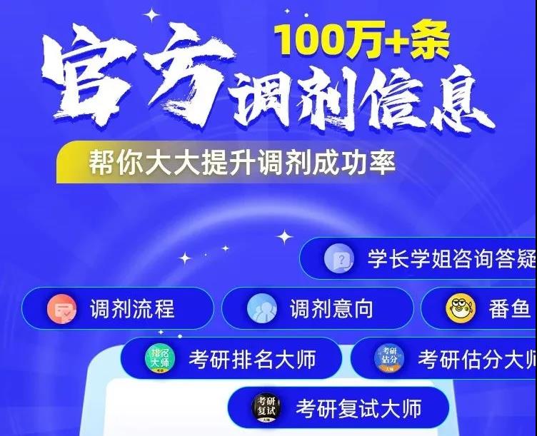 別猶豫,快來(lái)【考研調(diào)劑大師】把握新鮮的調(diào)劑信息,讓你不再大海撈針找信息,穩(wěn)準(zhǔn)快的戰(zhàn)調(diào)劑。
