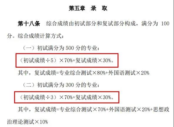 考生最終成績(百分制)=初試總分÷5×50%+復試成績(換算為百分制)×50%。