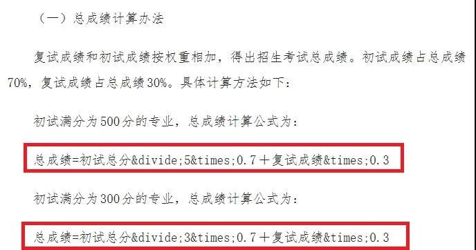 總成績=初試總分÷3×0.7+復試成績×0.3