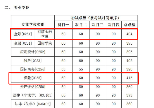 《中國人民大學2021年碩士研究生招生考試考生進入復試的初試成績基本要求》中,今年其專業學位金融-財政金融學院復試線為404分;保險專業為415分。