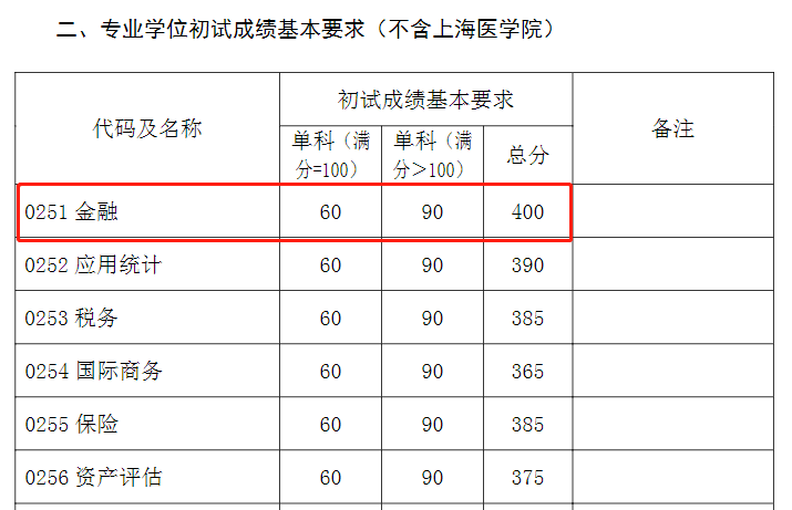 《復旦大學2021年碩士研究生招生考試考生進入復試的初試成績基本要求》中可知,今年其專業學位金融復試線為400分。