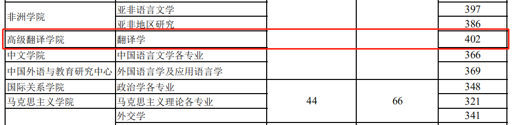 在《2021年北京外國語大學碩士研究生進入復試的初試成績基本要求》中可以看到,其高級翻譯學院-翻譯學專業復試線為402分。