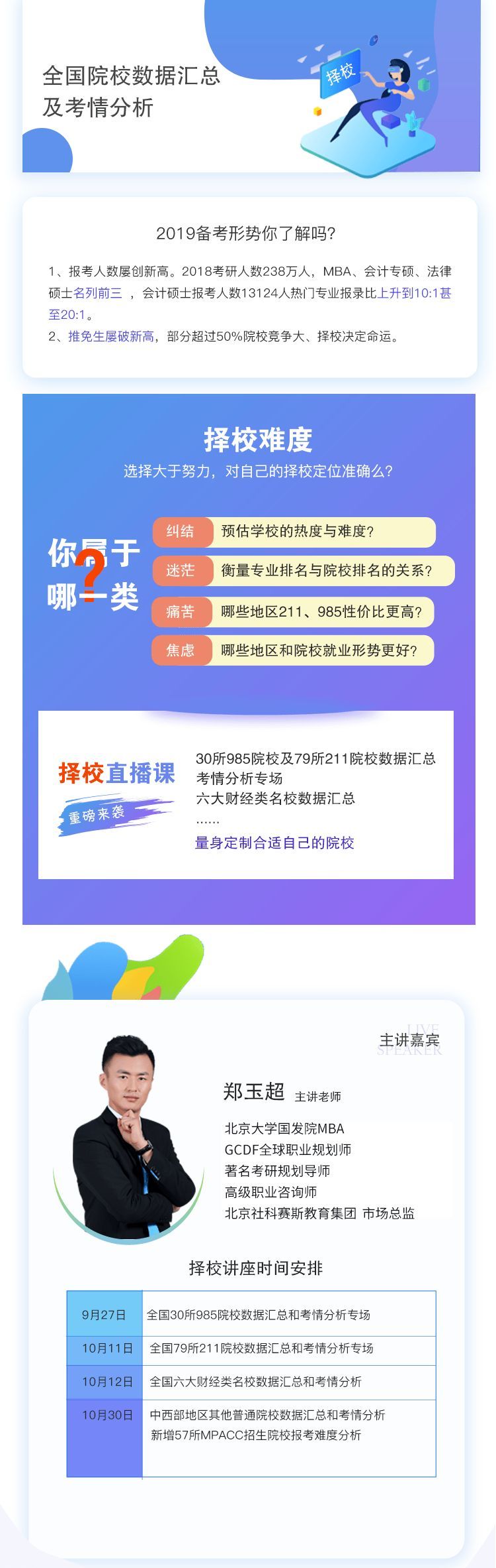北大男神、高級考研咨詢師鄭老師與您與10月11日晚7點相約研線課堂,授你擇校秘籍,考研無憂!