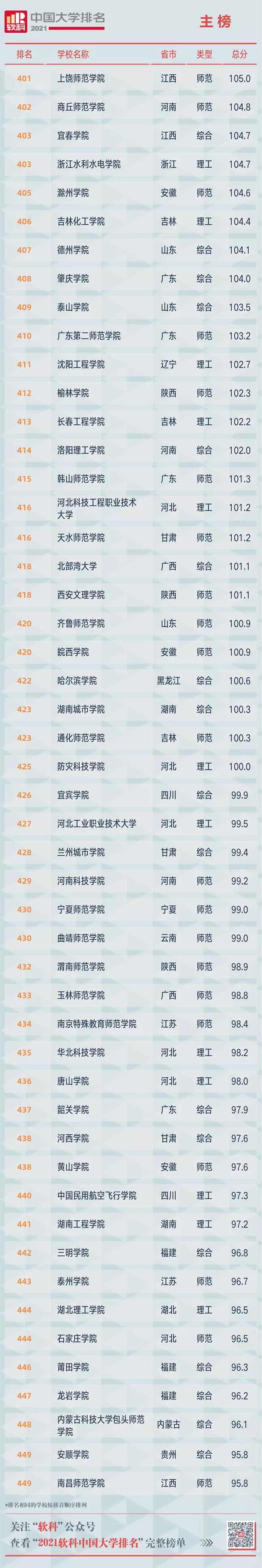 下表為綜合性大學排名、6個單科性大學和合作辦學大學的全國參考排名總榜單。