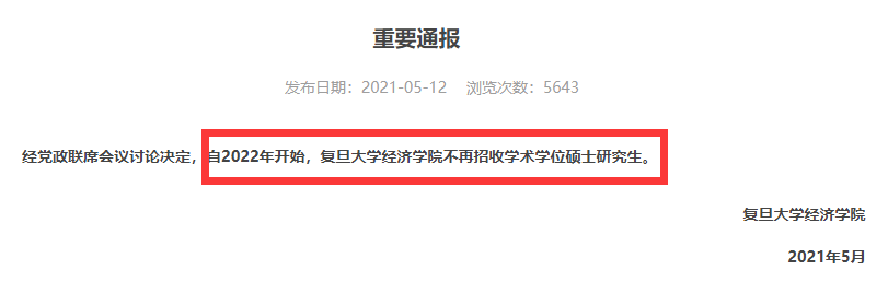 說起縮招停招,大家聽說了嘛~復旦大學經濟學院從今年起不再招收學術學位碩士研究生了!
