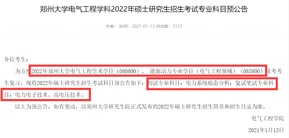 2022年鄭州大學電氣工程學術學位(080800)、 能源動力專業學位(電氣工程領域)(085800)初試專業科目為電力系統穩態分析,復試筆試專業科目為電力電子技術、高電壓技術。