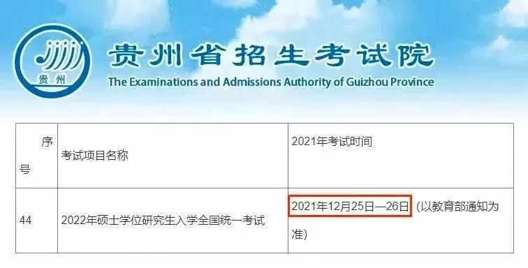 至于具體考試時間,還沒確定,不過之前貴州省招生考試院發布《2021年貴州省招生考試院各項考試時間安排》,其中提到了考研時間安排,在2021年12月25日-26日,可以做個參考,當然還是要以具體通知為準。