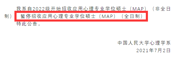 我系自2022級(jí)開始招收應(yīng)用心理專業(yè)學(xué)位碩士(MAP)(非全日制),暫停招收應(yīng)用心理專業(yè)學(xué)位碩士(MAP)(全日制)。