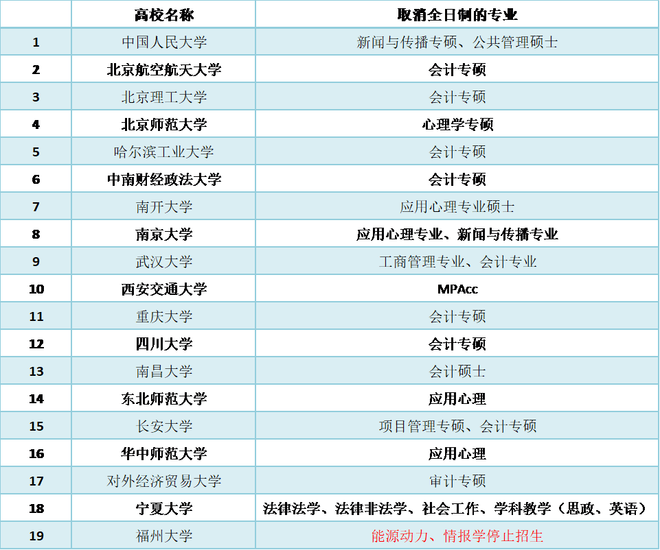 目前已有多所院校某些專業(yè)停招全日制或者新增非全日制招生,以下是取消全日制的專業(yè)匯總,可供參考: