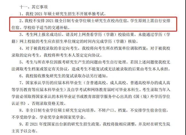 南京大學不安排2021級全日制專碩在校內住宿,學生原則上需自行安排住宿。學校給予適當的交通補貼。