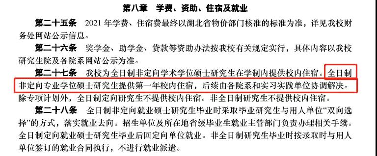 我校為全日制非定向學術學位碩士研究生在學制內提供校內住宿。全日制非定向專業學位碩士研究生提供第一年校內住宿,后續由各院系和實習實踐單位協調解決。除專項計劃外,全日制定向研究生不提供校內住宿。非全日制研究生不提供校內住宿。