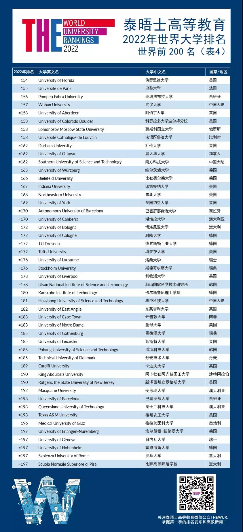 在 2022 年的排名中,中國大陸(97 所)成為上榜高校數量第四多的國家和地區,僅次于美國(183 所)、日本(118 所)和英國(101 所)