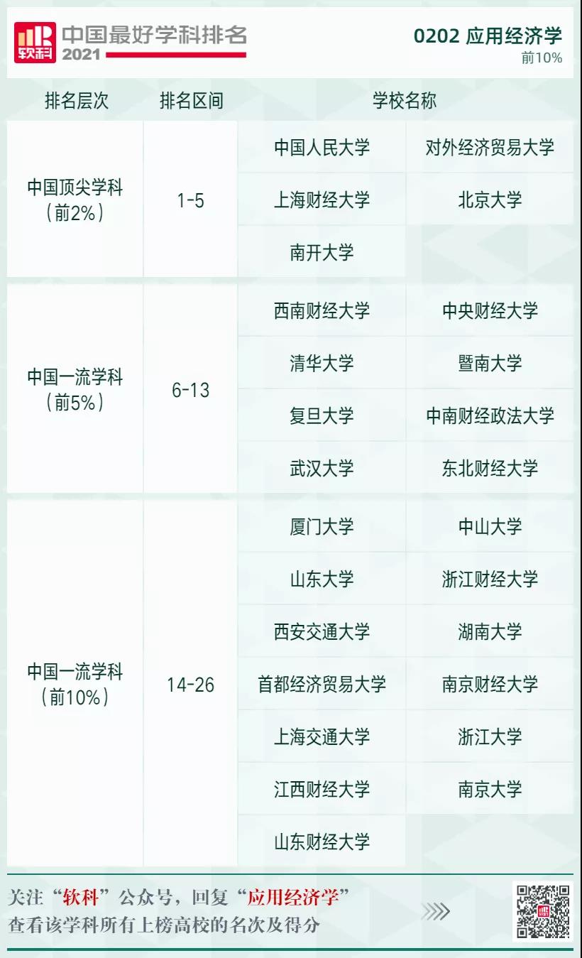 應(yīng)用經(jīng)濟(jì)學(xué)學(xué)科排名前10%的高校: