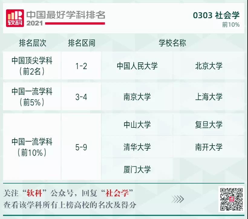 社會(huì)學(xué)學(xué)科排名前10%的高校: