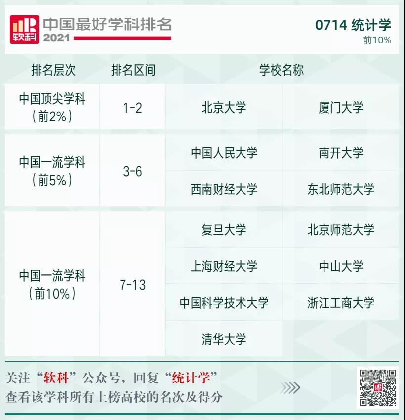 統(tǒng)計(jì)學(xué)學(xué)科排名前10%的高校: