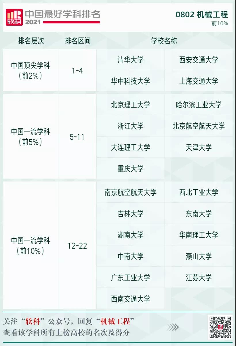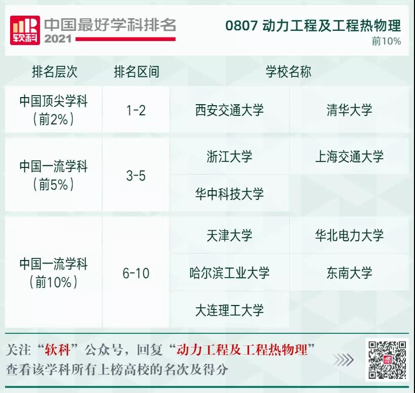 動(dòng)力工程及工程熱物理學(xué)科排名前10%的高校:
