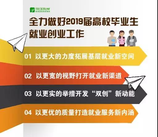 林蕙青指出,2019屆全國普通高校畢業生預計834萬人。盡管就業創業工作面臨復雜嚴峻的形勢,不確定和不穩定因素在增加,但我國經濟運行總體平穩,對高校畢業生需求總體穩定,創業環境不斷優化,我們有條件、有能力應對好各種困難和挑戰。各地各高校要抓住關鍵環節,全力做好2019屆高校畢業生就業創業工作。