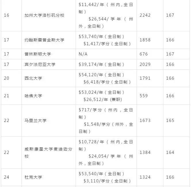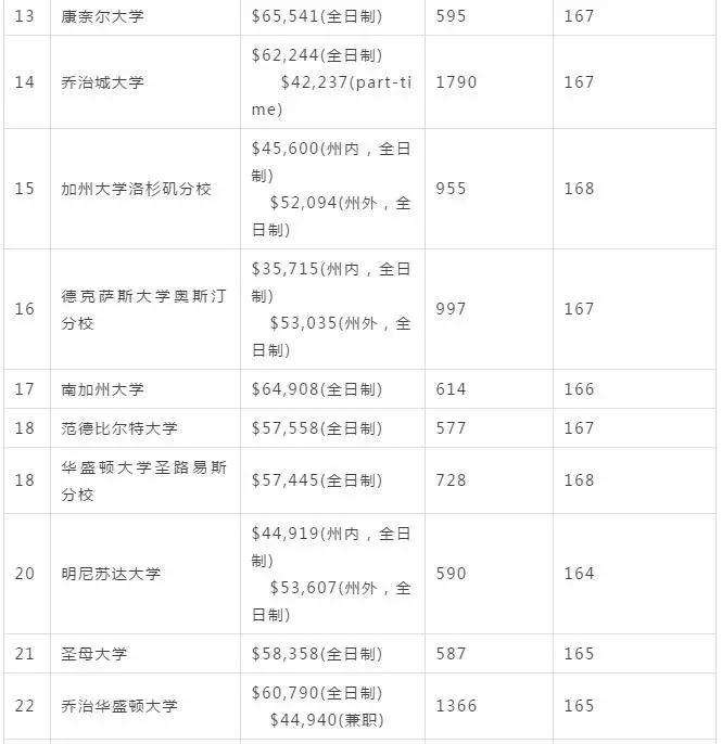 和往年一樣,本次研究生院細分為商科、法學、教育、工程、醫學(分為研究和初級治療)、護理(分為碩士和博士)六大類項目,每個大類下按研究方向再細分多個專業排名。