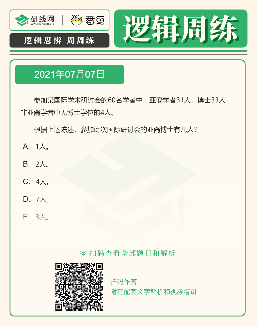 2022考研邏輯備考:7月7日邏輯專項練習及答案