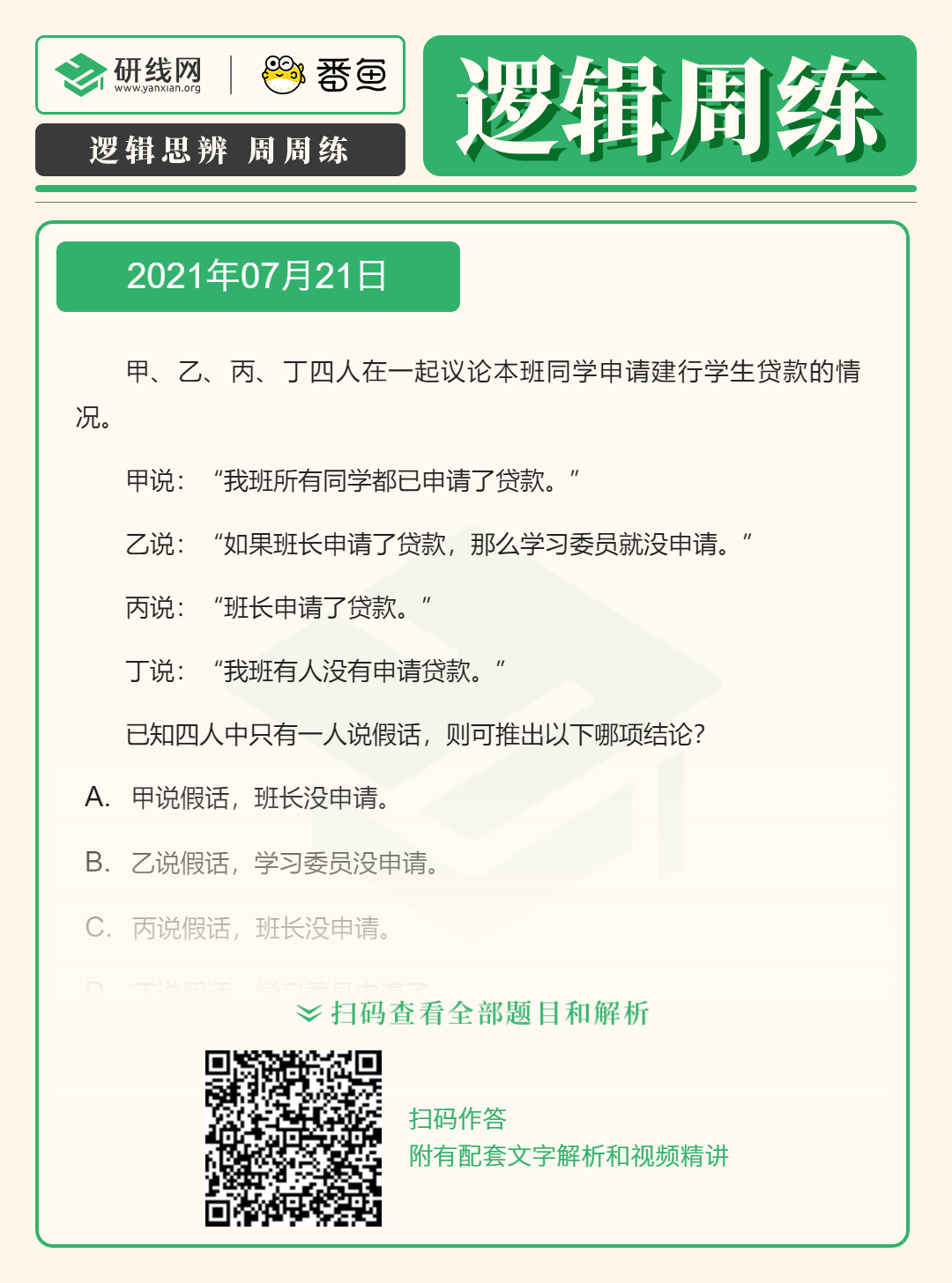以上就是小編為大家整理“2022考研邏輯備考:7月21日邏輯專項練習及答案”的全部內容,希望各位考生堅持利用起來,想要獲取更多內容請持續關注本網站。
