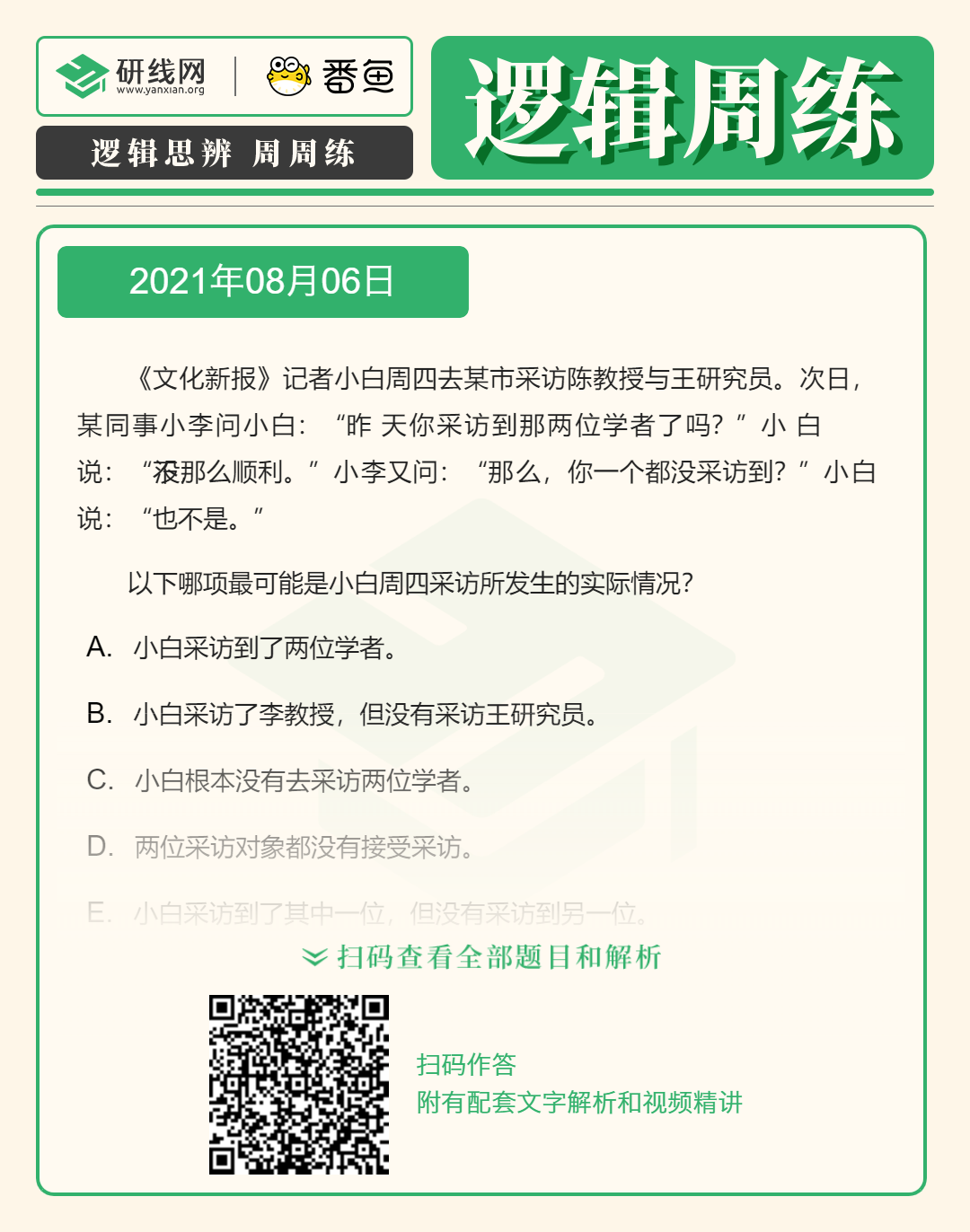 邏輯思辨周周練,考研邏輯專項練習,攻克邏輯難關!今天小編整理了“2022考研邏輯備考:8月6日邏輯專項練習及答案”,希望能對廣大考生有所幫助!