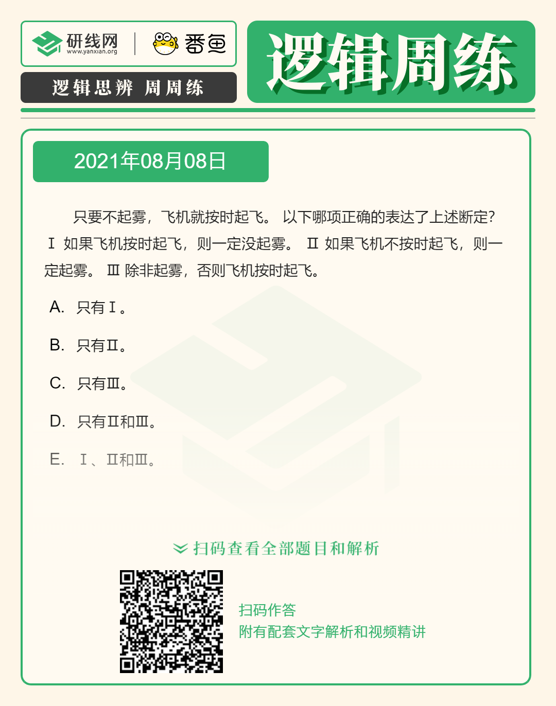 2022考研邏輯備考:8月8日邏輯專項練習及答案