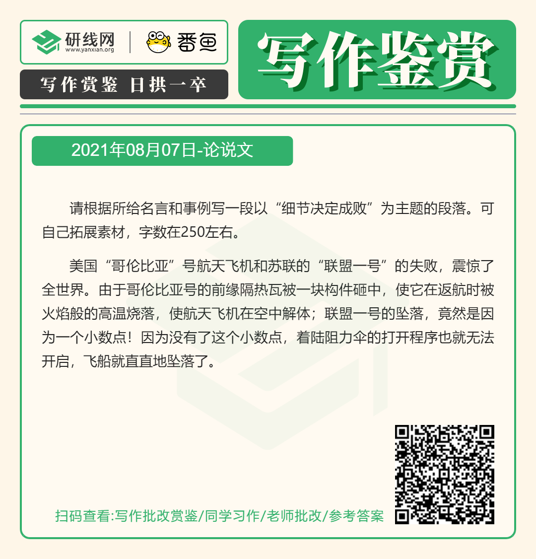 以上就是小編為大家整理“2022考研寫作備考:8月7日寫作鑒賞及答案”的全部內(nèi)容,希望各位考生堅(jiān)持利用起來,想要獲取更多內(nèi)容請持續(xù)關(guān)注本網(wǎng)站。