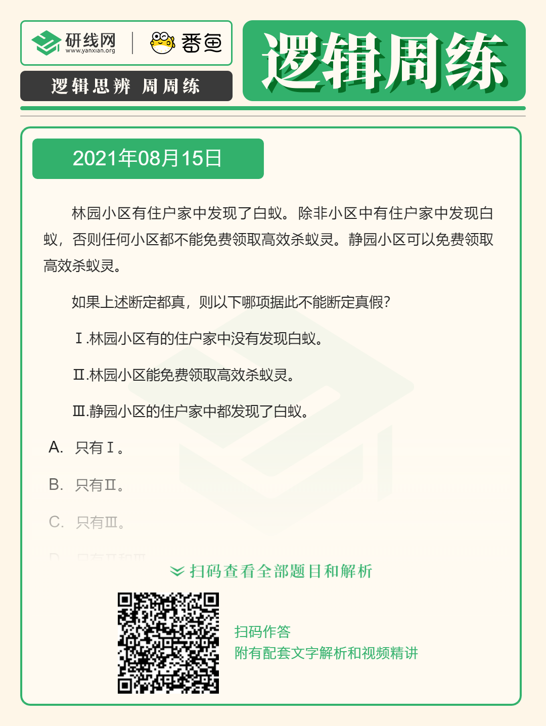 以上就是小編為大家整理“2022考研邏輯備考:8月15日邏輯專項(xiàng)練習(xí)及答案”的全部?jī)?nèi)容,希望各位考生堅(jiān)持利用起來(lái),想要獲取更多內(nèi)容請(qǐng)持續(xù)關(guān)注本網(wǎng)站。